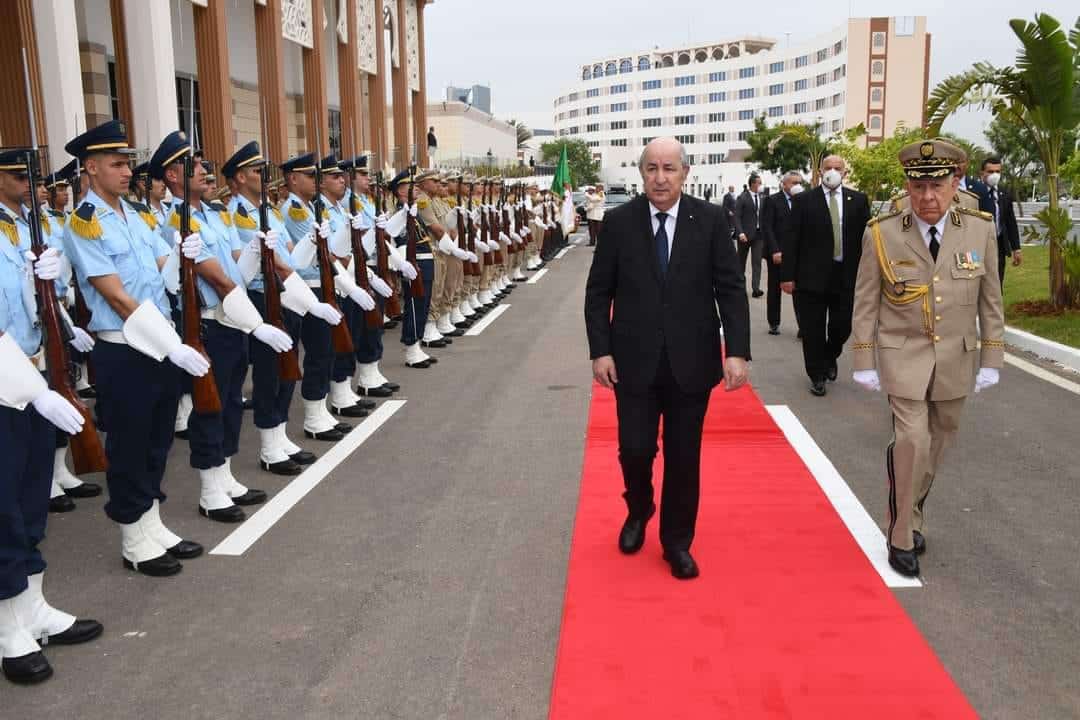 بعد ذلك غادر السيد رئيس الجمهورية، القائد الأعلى للقوات المسلحة، وزير الدفاع الوطني، حيث كان في توديعه السيد الفريق أول رئيس أركان الجيش الوطني الشعبي، مع تأدية التحية الشرفية للسيد رئيس الجمهورية من طرف تشكيلة عسكرية.
